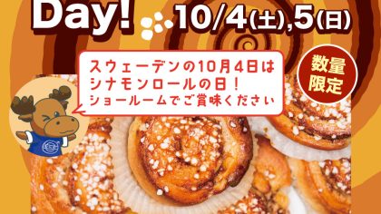 ついに明日!!10月4日はスウェーデンでいうシナモンロールの日!! ご来場いただきましたお客様にシナモンロールをご提供させていただきます☆※数量限定となりますので、ご了承くださいませ。また、ハロウィンのちょっとしたイベントも開催しております!...